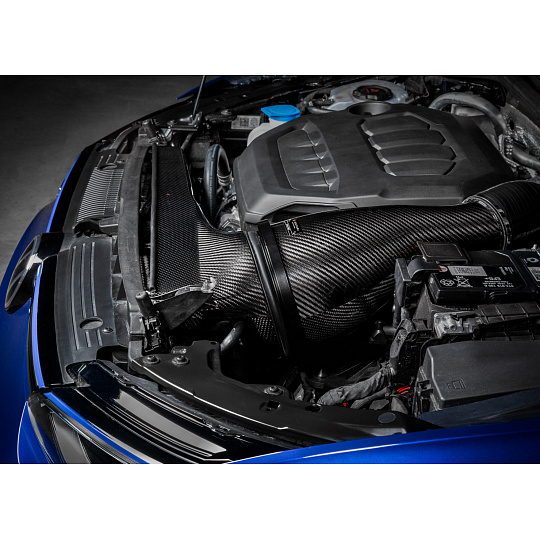 Kompletní airbox sání Eventuri pro VW Golf 8 GTI se skládá z vysoce výkonného vzduchového filtru umístěného v karbonovém pouzdru s patentovaným tvarem, hliníkovým zaobleným hrdlem a laserem řezanými kovovými držáky. Samotný tvar airboxu zajišťuje hladké laminární proudění přímo k turbodmychadlu bez nežádoucích restrikcí nebo víření.