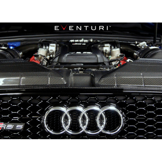 Karbonový kryt přesně navazuje na karbonový kit sání Eventuri s označením EVE-RS5-INT a spolu s karbonovým krytem motoru dokonale dokresluje agresivní vzhled motorového prostoru.