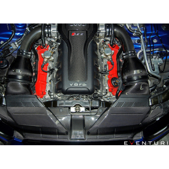 Karbonový kryt přesně navazuje na karbonový kit sání Eventuri s označením EVE-RS5-INT a spolu s karbonovým krytem motoru dokonale dokresluje agresivní vzhled motorového prostoru.