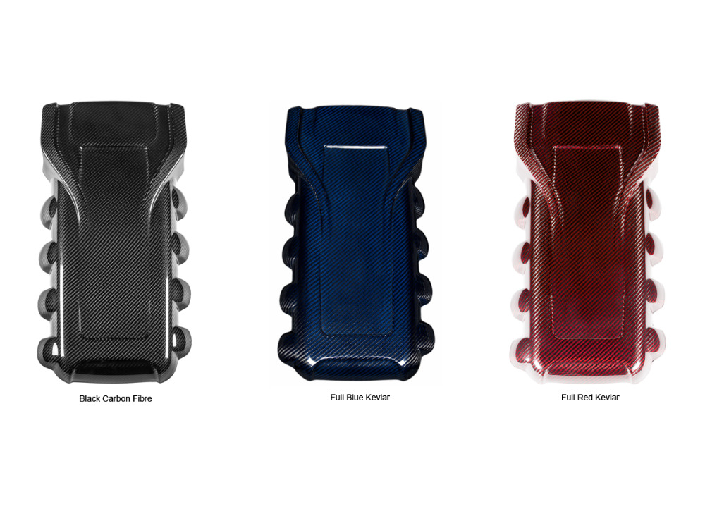 Náhrada originálního plastového krytu motoru vyrobená britskou společností Eventuri kompletně z prepreg karbonu, stejně jako Eventuri karbonové kity sání. Na výrobu dílu není použit žádný sklolaminát.