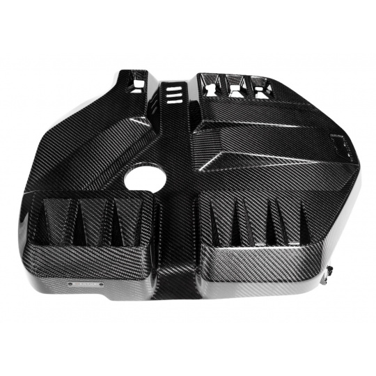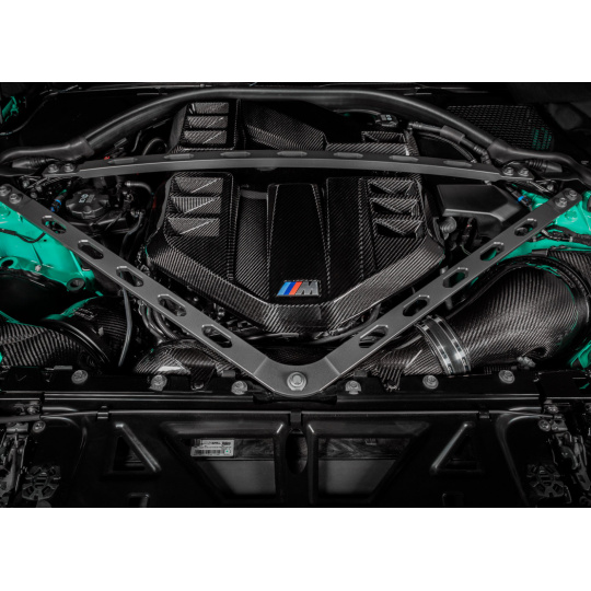 BMW M3 G80 a M4 G82/G83 je vlajkovou lodí mnichovské automobilky a jejich motorový prostor by být stejně krásný jako je výkonný. Originální plastový kryt motoru působí nedokončeně a nesouměrně. Proto Eventuri zvolilo vlastní tvar pro svůj karbonový kryt motoru, který nyní působí symetricky a lépe vyplňuje prostor pod kapotou. Větrací otvory pak zabraňují přehřívání motoru skrývajícího se pod karbonovým krytem. Kryt je kompletně vyrobený z prepreg karbonu a přímou náhradou za tovární díl včetně využití originálních montážních bodů.