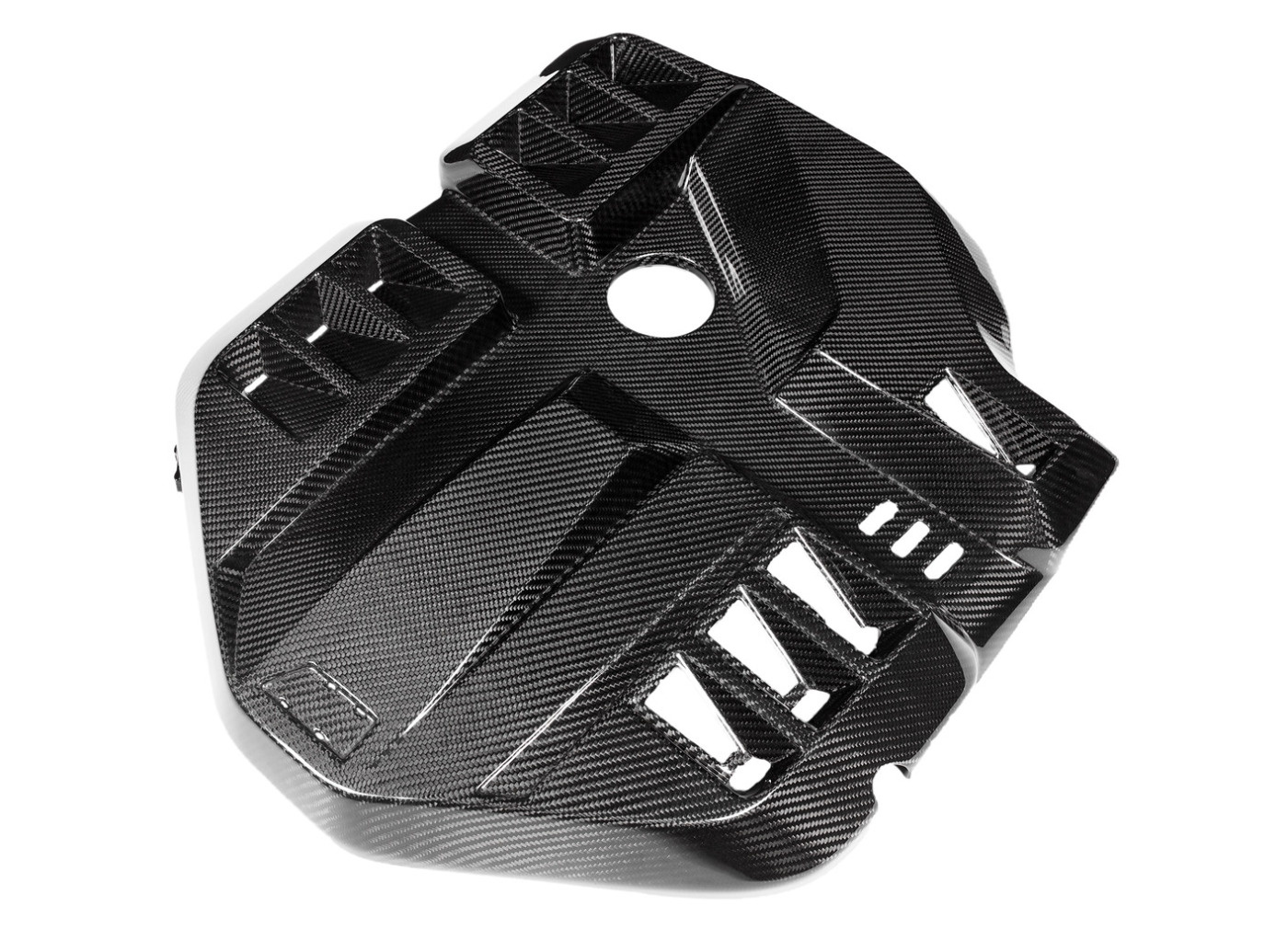 BMW M3 G80 a M4 G82/G83 je vlajkovou lodí mnichovské automobilky a jejich motorový prostor by být stejně krásný jako je výkonný. Originální plastový kryt motoru působí nedokončeně a nesouměrně. Proto Eventuri zvolilo vlastní tvar pro svůj karbonový kryt motoru, který nyní působí symetricky a lépe vyplňuje prostor pod kapotou. Větrací otvory pak zabraňují přehřívání motoru skrývajícího se pod karbonovým krytem. Kryt je kompletně vyrobený z prepreg karbonu a přímou náhradou za tovární díl včetně využití originálních montážních bodů.