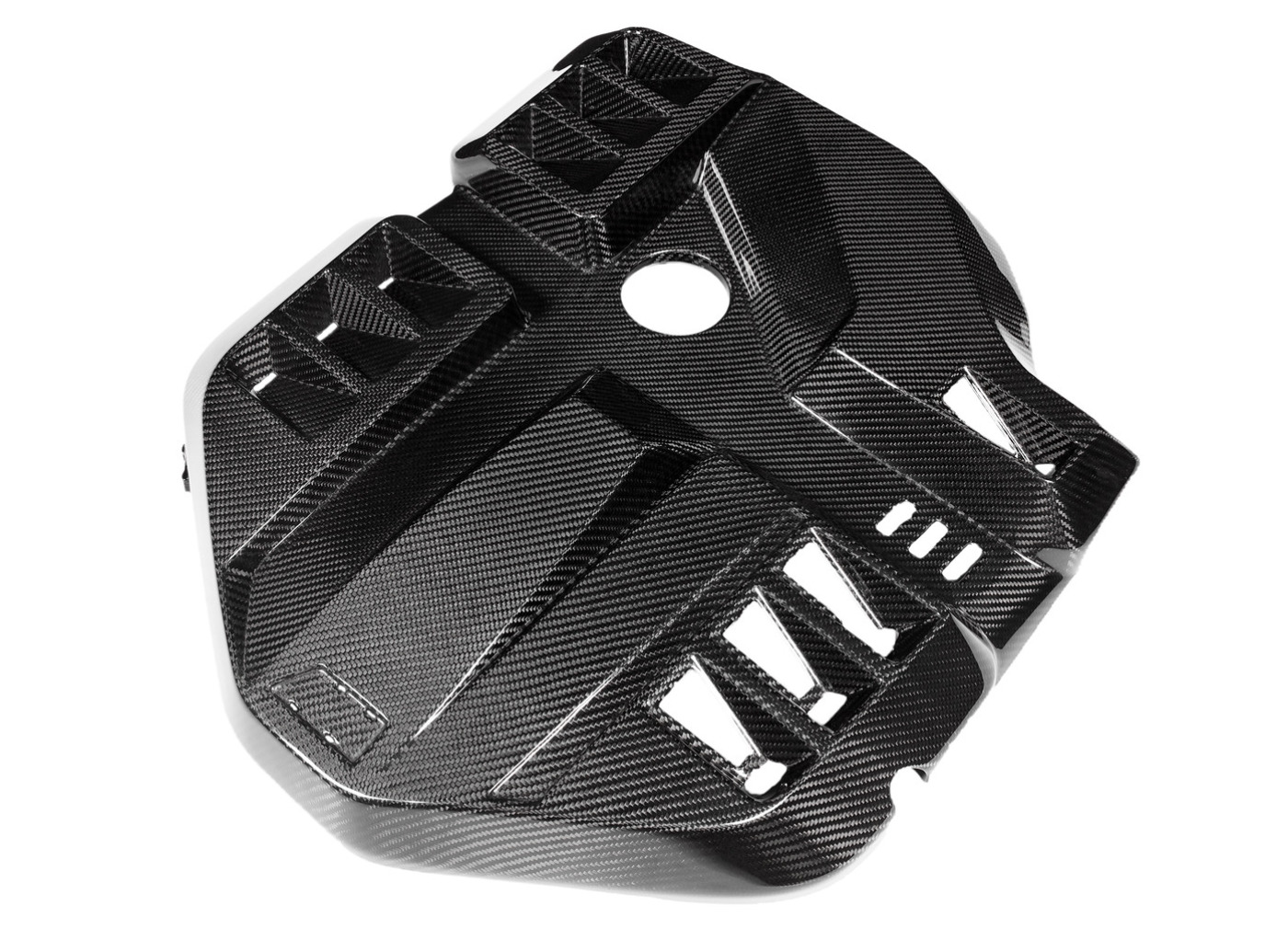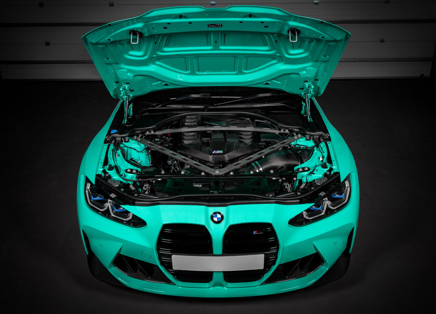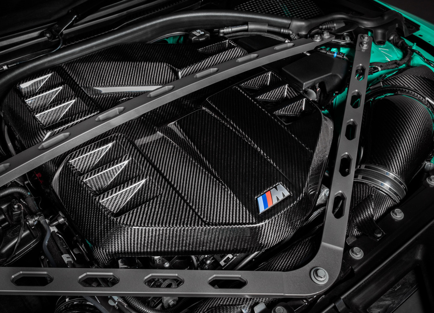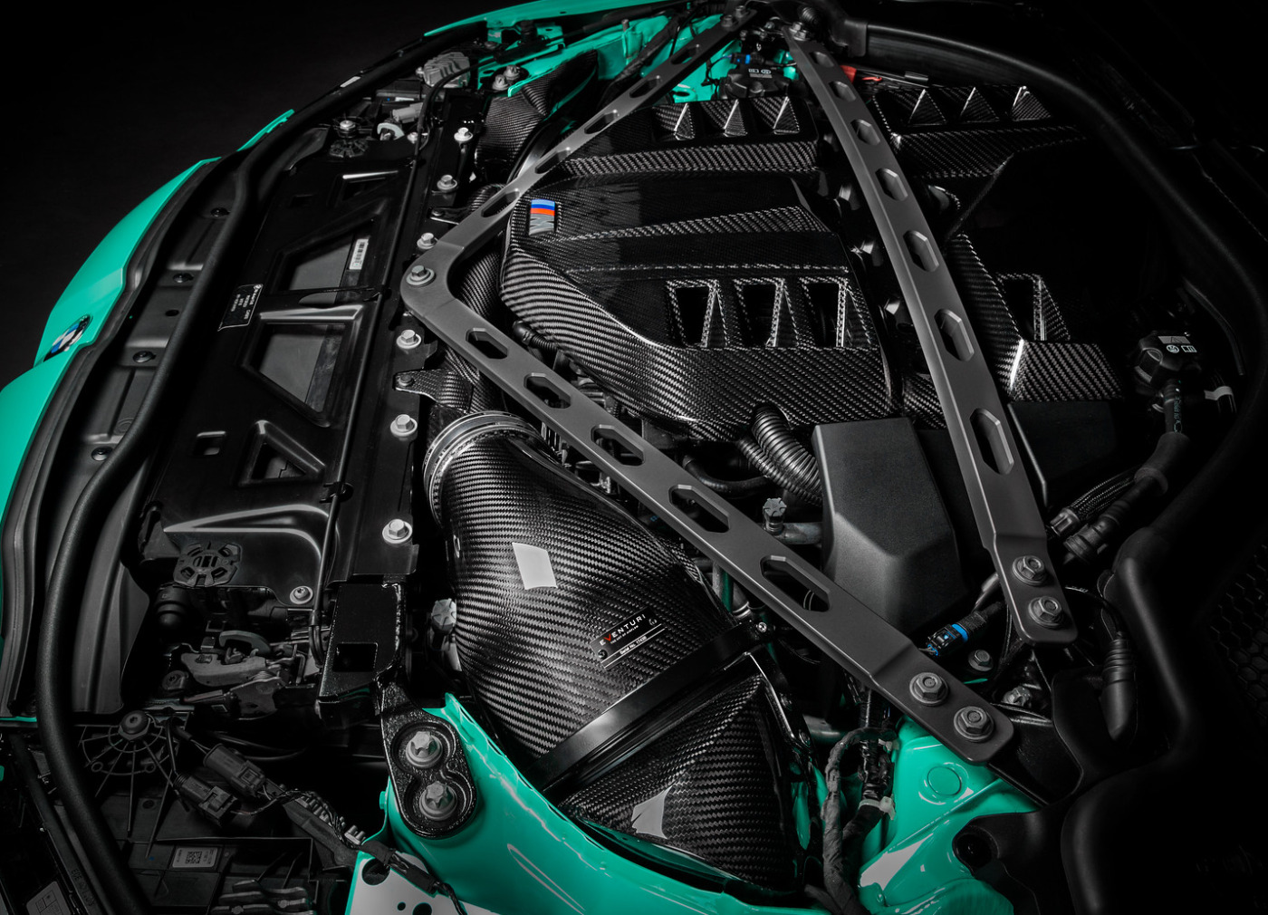 BMW M3 G80 a M4 G82/G83 je vlajkovou lodí mnichovské automobilky a jejich motorový prostor by být stejně krásný jako je výkonný. Originální plastový kryt motoru působí nedokončeně a nesouměrně. Proto Eventuri zvolilo vlastní tvar pro svůj karbonový kryt motoru, který nyní působí symetricky a lépe vyplňuje prostor pod kapotou. Větrací otvory pak zabraňují přehřívání motoru skrývajícího se pod karbonovým krytem. Kryt je kompletně vyrobený z prepreg karbonu a přímou náhradou za tovární díl včetně využití originálních montážních bodů.