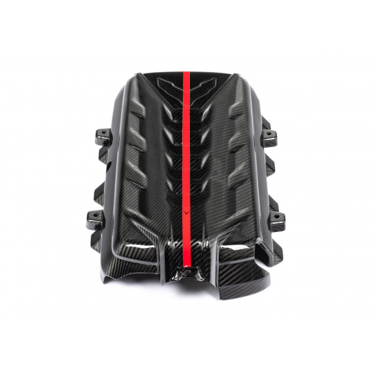 Karbonový kryt motoru Eventuri pro Chevrolet Corvette C8 je vyrobený ze 100% prepreg karbonu s lesklým povrchem a doplněný o červenou linku s logem Eventuri. Tento grafický prvek plynule navazuje na karbonové sání Eventuri, které je pro vůz také dostupné.