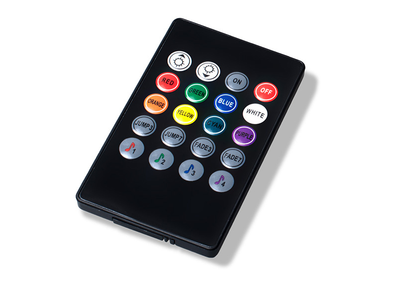 Režim: po zapnutí na CL napáječi se LED zapnou. Pomocí dálkového ovladače lze volit jednotlivé barvy a intenzitu či přednastavené režimy. Nebo lze zapnout možnost blikání podle hudby (na jednotce je zabudovaný mikrofon).