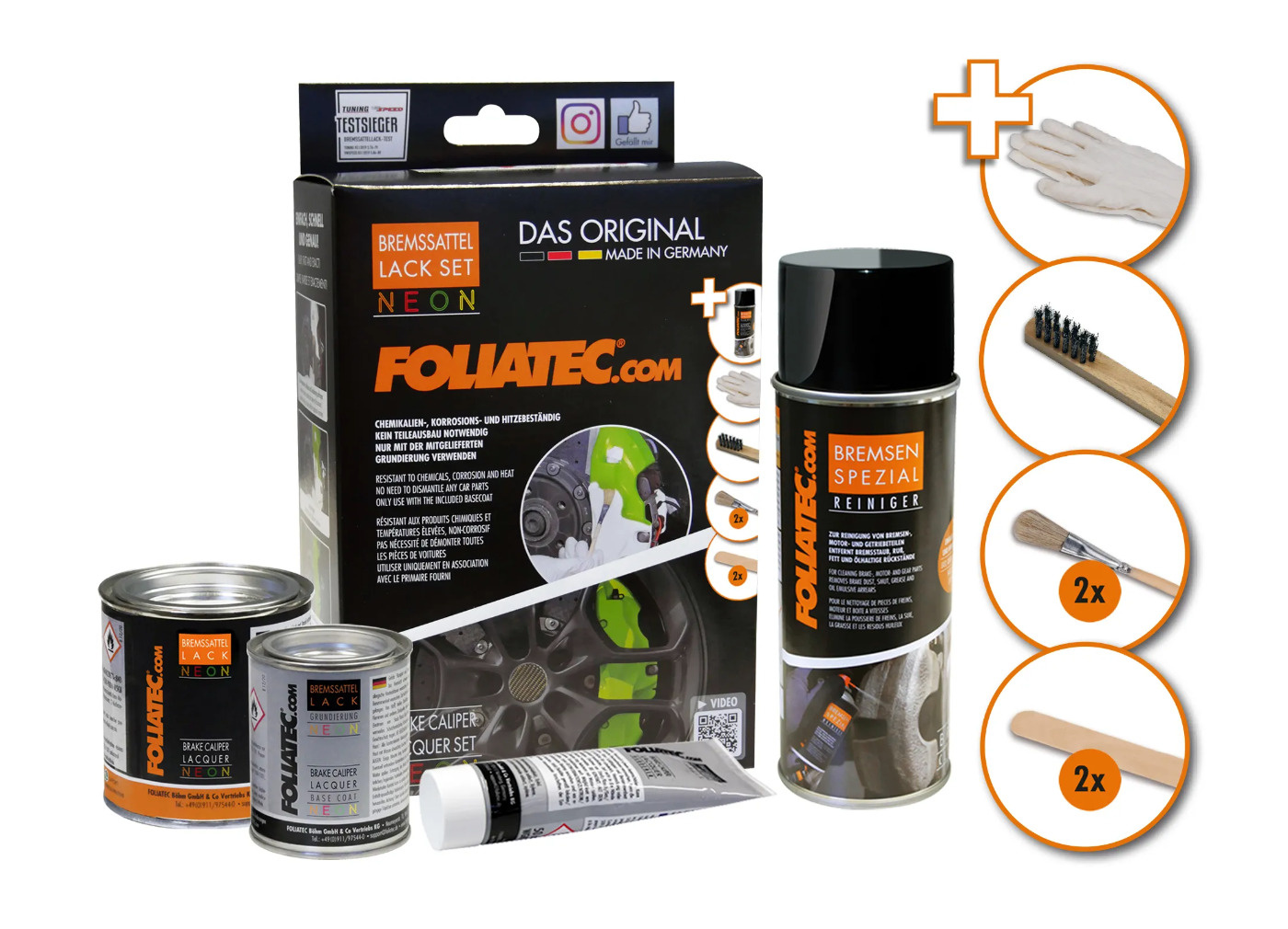 FOLIATEC neonová barva na brzdiče umožňuje snadnou proměnu zašlého povrchu brzdových třmenů či bubnových brzd. Barva je tepelně odolná a vhodná i pro jiné části vystavené vysokým teplotám, například motorové díly.