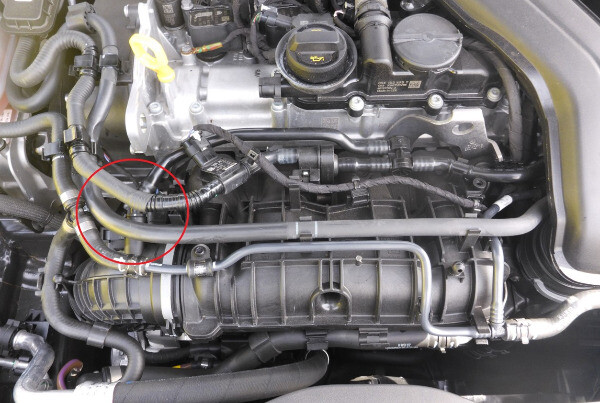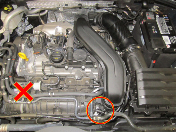 Adaptér Forge Motorsport se instaluje mezi koleno sacího potrubí a podtlakové potrubí, které z něj vychází (za dvěma zakroužkovanými trubkami na produktovém obrázku). Před objednáním si prosím umístění zkontrolujte, protože můžete potřebovat variantu FMBGFK21.
