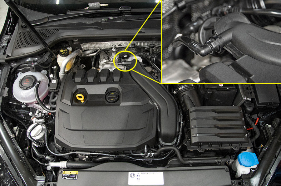 Pro správný výběr ventilu zkontrolujte, zda je váš motor vybaven oddechovým vedením (viz obrázek). V takovém případě volte ventil včetně výstupu na oddechový adaptér.