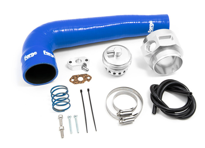Kompletní sada Blow Off Ventilu (BOV) Forge Motorsport pro vozy s motory 1.2 TSI. Ventil má otevřenou konstrukci, takže přebytečný vzduch slyšitelně odfukuje do okolí (na rozdíl od uzavřených recirkulačních ventilů, které jsou téměř neslyšné).
