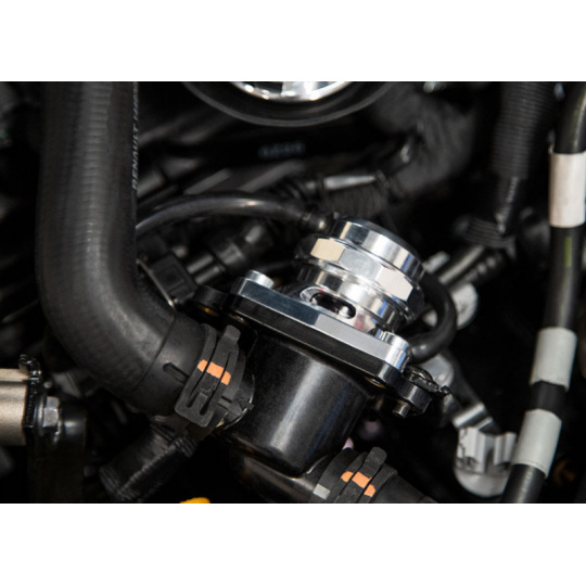 Kompletní Forge Motorsport BOV ventil pro Renault Megane RS 280/300 MK4. Ventil má otevřenou konstrukci, takže odfukuje přebytečný vzduch do okolí a projevuje se slyšitelným odfukem (na rozdíl od uzavřených ventilů, které jsou téměř neslyšné).