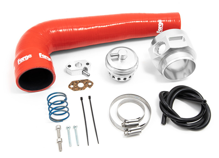 Forge Motorsport BOV ventil pro Seat Leon Mk2 2009-2012, barva hadice: červená, barva ventilu: stříbrná