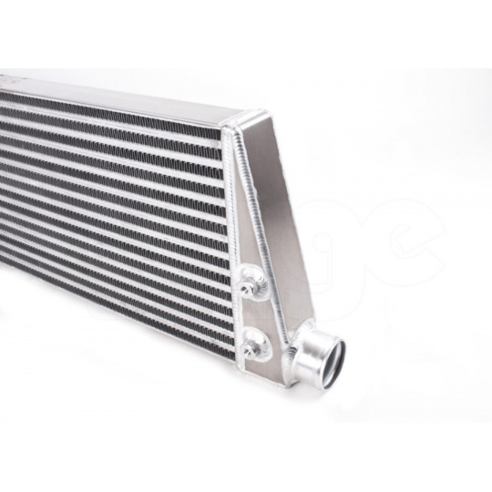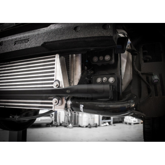 Originální řešení dvojitého intercooleru zapojeného paralelně není samo o sobě špatné, ale má své limity. Forge kit odstraňuje dlouhá vedení vzduchu s malým průměrem a zároveň výrazně zvětšuje aktivní plochu chladiče. Výsledkem je nižší odpor v proudění vzduchu, lepší průchodnost soustavy a hlavně efektivnější chlazení nasávaného vzduchu. To se projeví stabilnějším výkonem, lepší odezvou a větší rezervou pro další úpravy.