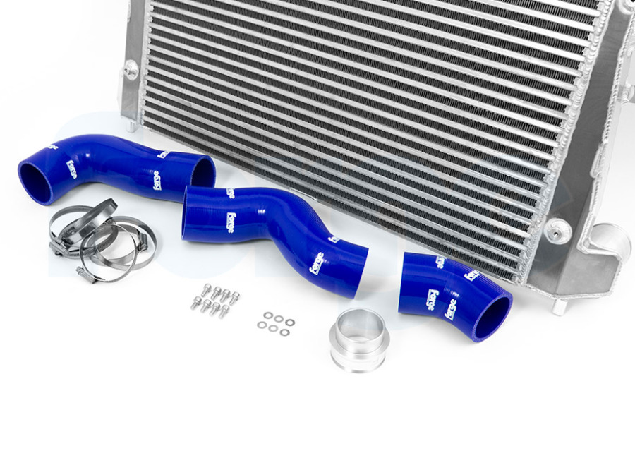 Intercooler má vstup i výstup shodně o průměru 63 mm, což umožňuje jeho použití jako Forge Twintercooler díky hadicím dodávaným s Twintercooler kitem. Pro montáž samostatně dodáváme k intercooleru sadu hadic FMKT010.