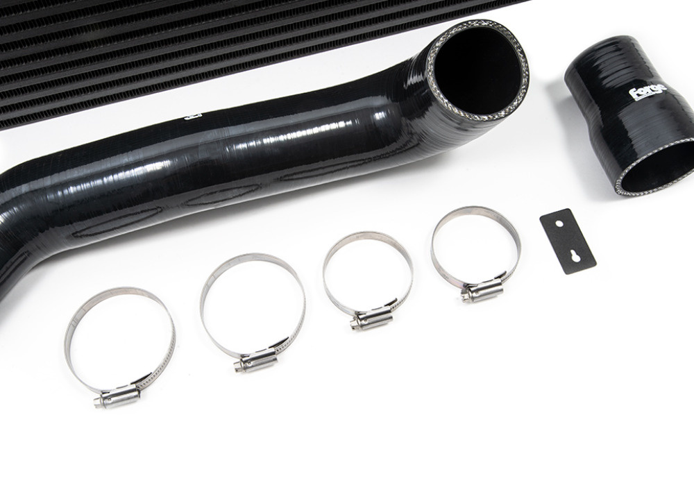 Intercooler Forge Motorsport je dodáván včetně veškerého instalačního materiálu. Montáž zabere přibližně 2,5 hodiny v závislosti na zkušenostech a vybavení dílny. Hmotnost celohliníkového intercooleru Forge je 9,65 kg oproti 3,7 kg u továrního dílu.