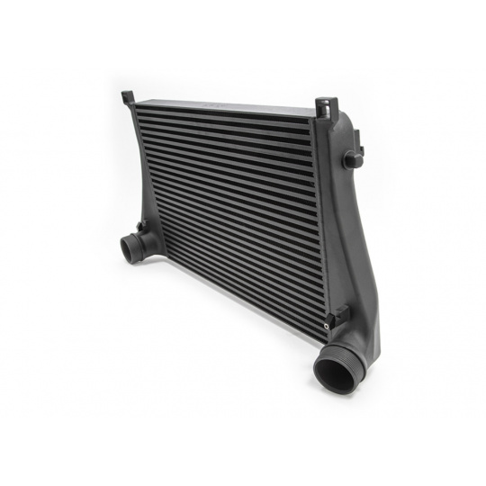 Vývoj začal osazením osvědčeného intercooleru pro předchozí generaci EA888 Gen3. Pomocí 3D skenování a CFD simulací proudění bylo navrženo zvětšení vstupního i výstupního průměru a nárůst celkového objemu jádra v rámci dostupného prostoru. Koncové části intercooleru byly na základě CFD testů následně vyrobeny technologií 3D tisku. Během vývoje bylo zároveň prověřeno několik konfigurací směrovacích příček pro ideální distribuci vzduchu uvnitř chladiče.