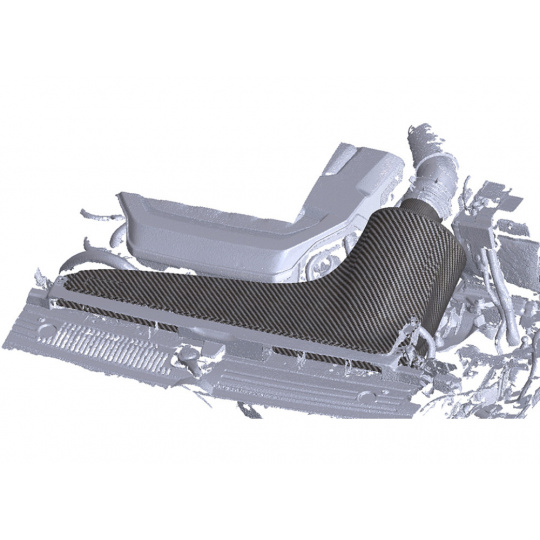 Kit sání Forge Motorsport využívá celé šířky panelu pro nasávání čerstvého vzduchu, do kterého se elegantně zasouvá. Utěsnění sacího vedení spolu s konstrukcí z prepreg karbonu zajišťuje nízkou teplotu nasávaného vzduchu. Velké množství chladného vzduchu před turbodmychadlem znamená rychlejší odezvu na sešlápnutí plynu a efektivnější využití jednotkou stanoveného poměru vzduchu a paliva.