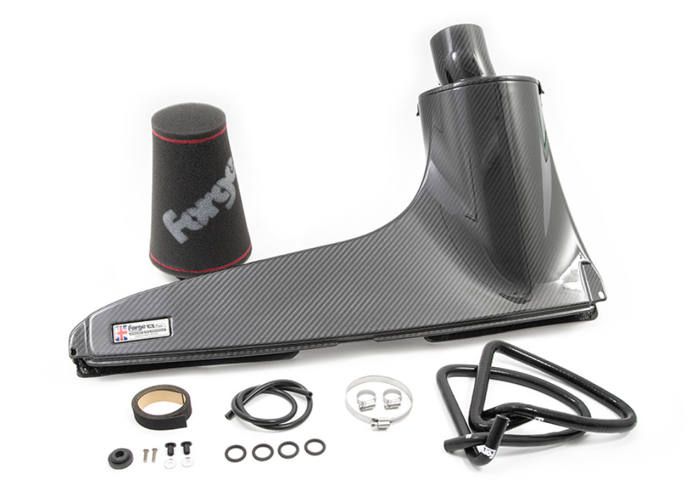Kit sání Forge Motorsport využívá celé šířky panelu pro nasávání čerstvého vzduchu, do kterého se elegantně zasouvá. Utěsnění sacího vedení spolu s konstrukcí z prepreg karbonu zajišťuje nízkou teplotu nasávaného vzduchu. Velké množství chladného vzduchu před turbodmychadlem znamená rychlejší odezvu na sešlápnutí plynu a efektivnější využití jednotkou stanoveného poměru vzduchu a paliva.