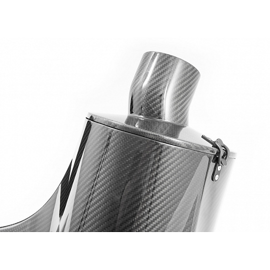 Kit sání Forge Motorsport využívá celé šířky panelu pro nasávání čerstvého vzduchu, do kterého se elegantně zasouvá. Utěsnění sacího vedení spolu s konstrukcí z prepreg karbonu zajišťuje nízkou teplotu nasávaného vzduchu. Velké množství chladného vzduchu před turbodmychadlem znamená rychlejší odezvu na sešlápnutí plynu a efektivnější využití jednotkou stanoveného poměru vzduchu a paliva.