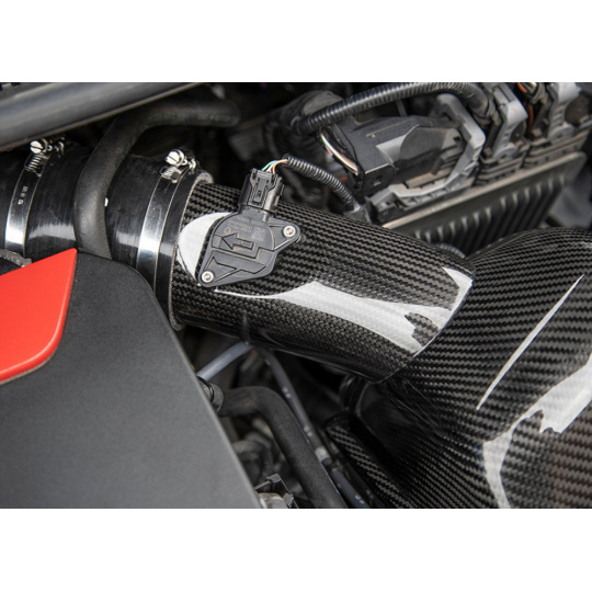Karbonové vlákno zde není použité pouze pro zlepšení vzhledu, ale účinně brání pronikání teplého vzduchu do sání. Díky tomu je účinně snížena teplota nasávaného vzduchu i při velké zátěži a výsledkem je vyšší výkon vozu.