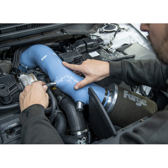 Na některých obrázcích můžete vidět také silikonovou hadici s integrovaným vstupem do turba (FMTIA11). Tato hadice je k dispozici samostatně a podporuje nejen výkon a krouticí moment, ale také zvukový projev vozu. Na fotografiích také není napojená hadice od blow off ventilu. Testovací vůz používal atmosférický (otevřený) blow off ventil Forge Motorsport FMDV37.