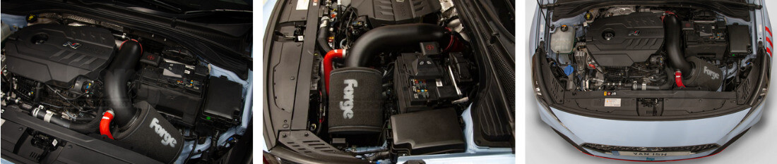 Sportovní sání Forge Motorsport pro vozy Hyundai i30N a Hyundai Veloster N bylo vyvinuto na základě závodního sání používaného v seriálu BTCC (British Touring Car Championship). Kit sání vyniká masivním průměrem vedení vzduchu 102 mm / 4" od filtru až ke vstupu do turbodmychadla, což zajišťuje maximální průtok vzduchu a stabilní výkon i při vysoké zátěži.