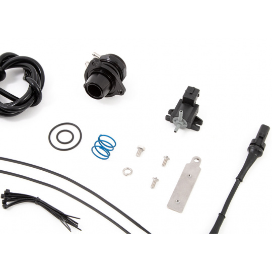 Kompletní sada odfukového Blow Off Ventilu (BOV) pro koncernové motory 2.0 TSI 4. generace (2021–). Ventil má otevřenou konstrukci, takže odfukuje přebytečný vzduch do okolí a projevuje se slyšitelným odfukem (na rozdíl od uzavřených ventilů, které jsou téměř neslyšné).
