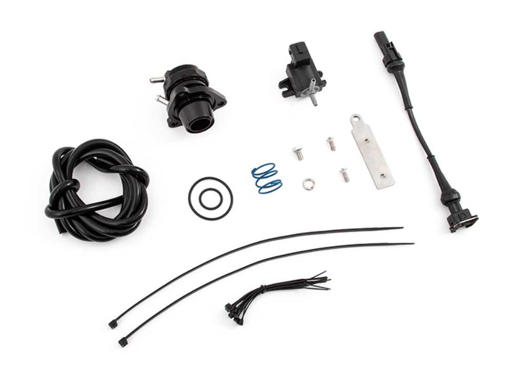Kompletní sada odfukového Blow Off Ventilu (BOV) pro koncernové motory 2.0 TSI 4. generace (2021–). Ventil má otevřenou konstrukci, takže odfukuje přebytečný vzduch do okolí a projevuje se slyšitelným odfukem (na rozdíl od uzavřených ventilů, které jsou téměř neslyšné).