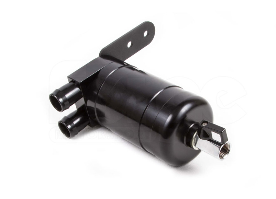 Forge Motorsport Oil Catch Tank pro VW Golf 6 GTI má objem 0,4 l a je dodáván jako kompletní sada pro snadný provoz, kontrolu hladiny i vypouštění oleje.