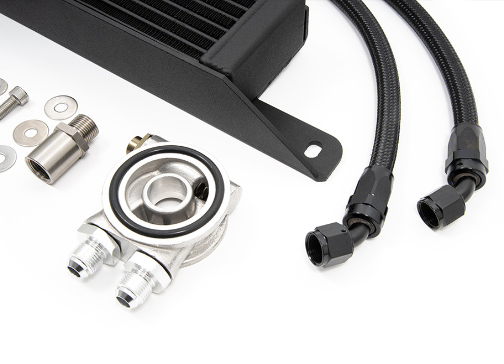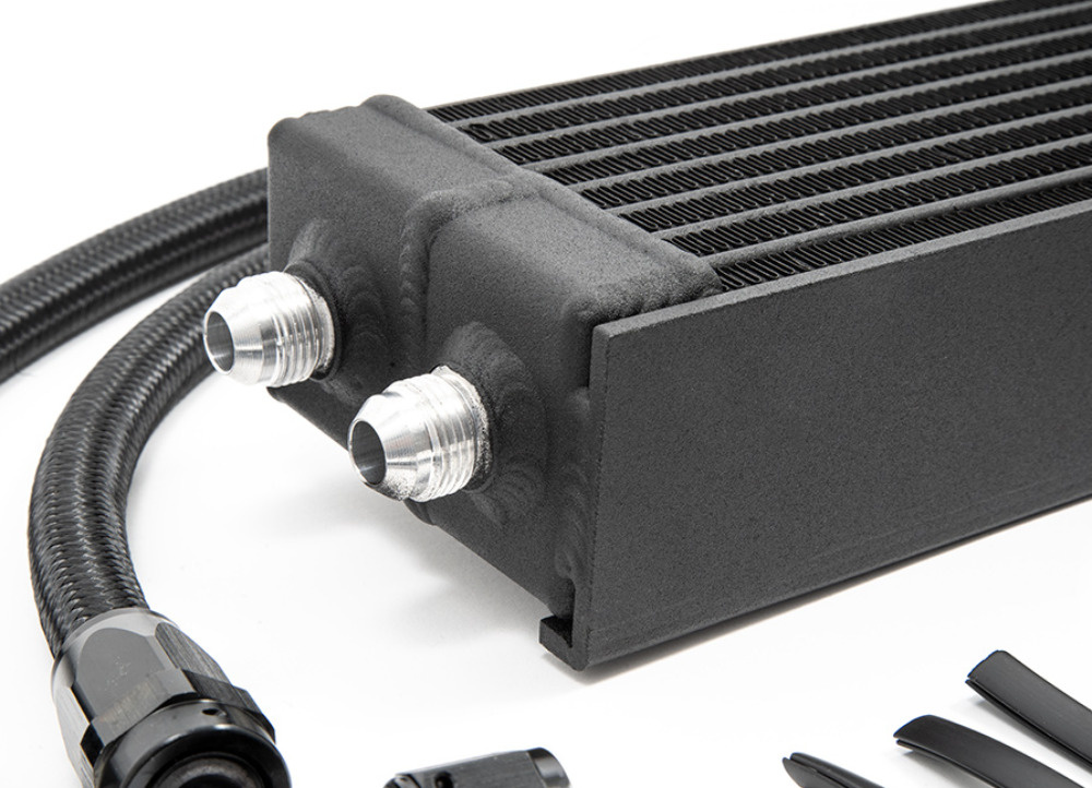 Na rozdíl od mnoha alternativních řešení zachovává FMOC12 také tovární výměník olej–voda, čímž se v reálném provozu zvyšuje celková kapacita chlazení. Součástí sady je laserem řezaný držák přesně pasující na nárazovou příčku vozu, předpřipravené hadice AN-8 a sendvičový adaptér s termostatem. Instalace je díky tomu přímá a bez úprav.