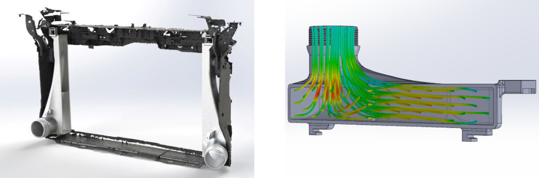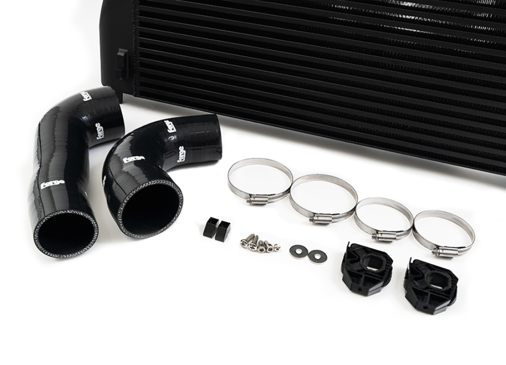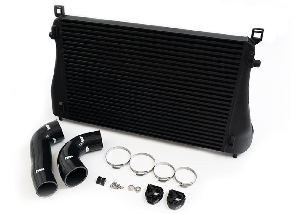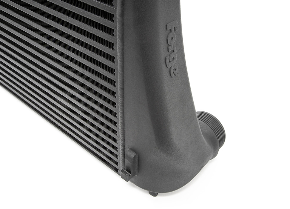 Nosný rám platformy MQB poskytuje pro intercooler relativně omezený prostor, protože jej sdílí i chladič chladicí kapaliny. Umístění většího a výkonnějšího chladiče proto představovalo reálnou konstrukční výzvu. Přesto se Forge Motorsport podařilo najít dodatečných 10 mm pro hloubku jádra a zároveň využít zkušenosti z vývoje intercooleru pro Golf 8. Pomocí 3D tisku vznikly nové příruby a testovací prototypy, jejichž finální podoba zahrnuje také zvětšený vstup i výstup.