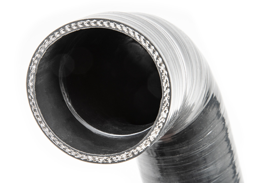 Se zvětšením průměrů na vstupu a výstupu se Forge zaměřil i na navazující silikonové hadice. Ty mají na vnitřní straně osazení, které po nasazení na příruby vytváří dokonale hladký přechod do intercooleru. Zatímco tovární příruby mají průměr 63 mm, nové příruby Forge jsou zvětšeny na 76 mm (3"), což představuje nárůst průtočné plochy o 45 %.