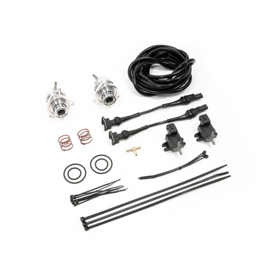 Sada obsahuje dvojici solenoidem ovládaných blow off ventilů Forge Motorsport včetně kabeláže, díky které je možné je jednoduše zapojit do originální elektroinstalace bez rizika chybových hlášení nebo rozsvícení kontrolky motoru. Ventily mají otevřenou konstrukci, takže přebytečný vzduch odfukují do okolí a při přeřazení nebo uvolnění plynu vytváří výrazný hlasitý syčivý zvuk.