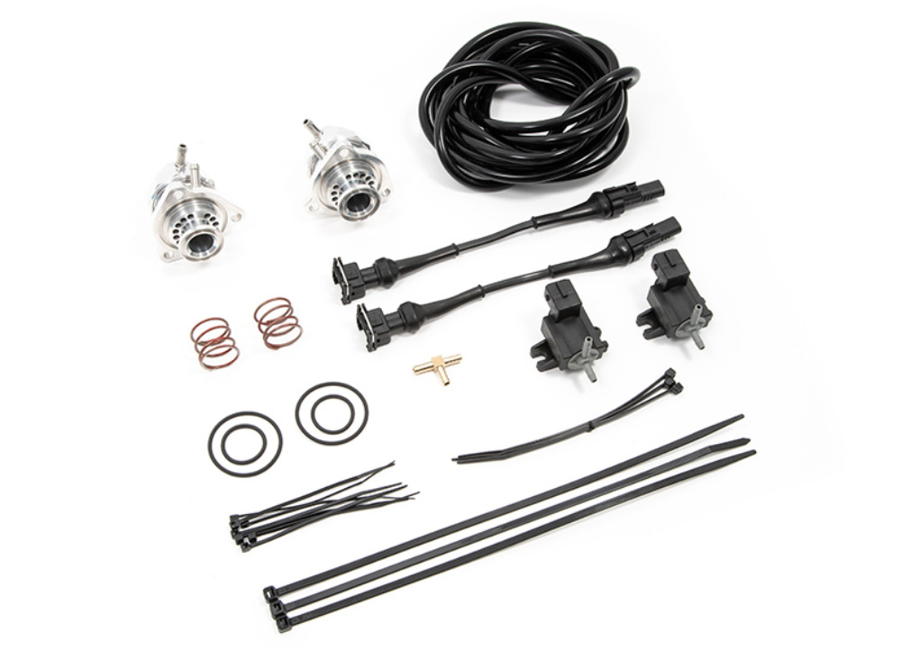 Sada obsahuje dvojici solenoidem ovládaných blow off ventilů Forge Motorsport včetně kabeláže, díky které je možné je jednoduše zapojit do originální elektroinstalace bez rizika chybových hlášení nebo rozsvícení kontrolky motoru. Ventily mají otevřenou konstrukci, takže přebytečný vzduch odfukují do okolí a při přeřazení nebo uvolnění plynu vytváří výrazný hlasitý syčivý zvuk.