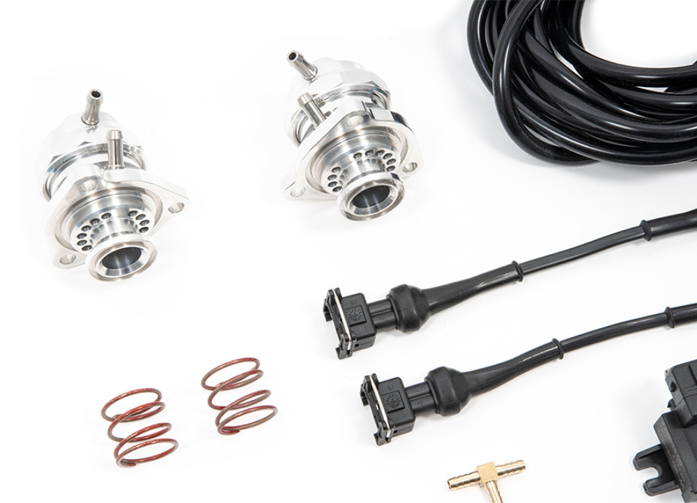 Sada obsahuje dvojici solenoidem ovládaných blow off ventilů Forge Motorsport včetně kabeláže, díky které je možné je jednoduše zapojit do originální elektroinstalace bez rizika chybových hlášení nebo rozsvícení kontrolky motoru. Ventily mají otevřenou konstrukci, takže přebytečný vzduch odfukují do okolí a při přeřazení nebo uvolnění plynu vytváří výrazný hlasitý syčivý zvuk.
