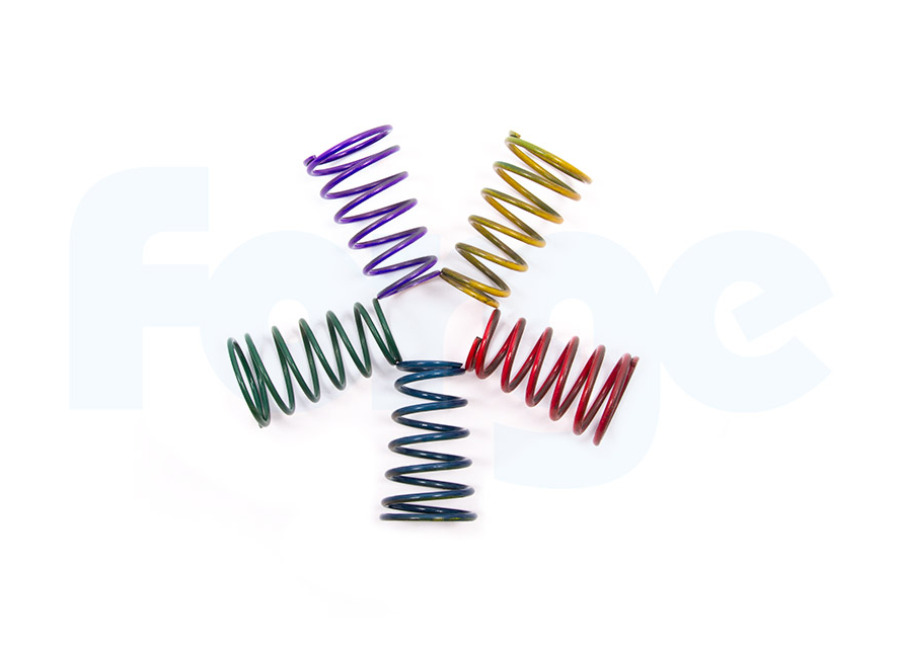 V sadě pružin Forge Motorsport pro interní wastegate actuatory naleznete podle typu 4 nebo 5 pružin s odlišnou tuhostí pro správné nastavení tuhosti actuatoru. Jejich pořadí od nejtužší po nejměkčí je:
