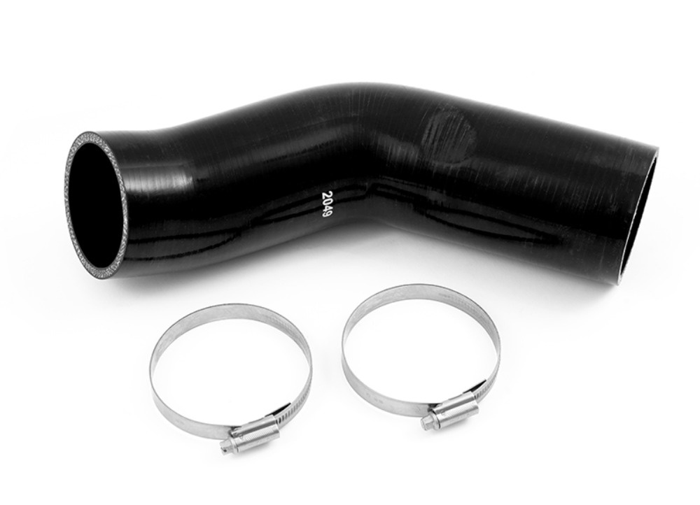 Hadice spojující airbox sání se vstupem do turba je v motorovém prostoru dobře viditelná a v podobě silikonové náhrady Forge Motorsport tak výrazně přispívá k celkovému vzhledu prostoru pod kapotou. Navíc má na rozdíl od originálního vedení neměnný vnitřní průměr, což napomáhá hladkému proudění vzduchu do motoru.
