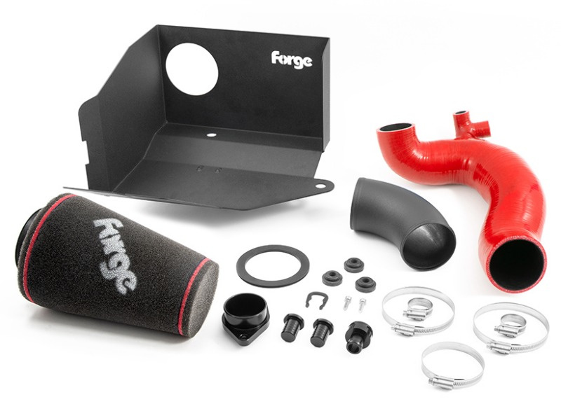 Filtr doplňuje silikonová sací hadice se zvětšeným objemem, hladkou vnitřní stěnou a příruba pro napojení na turbodmychadlo. Hadice je navržena tak, aby vedla vzduch k turbu co nejpřímější cestou bez restrikcí a nežádoucích zlomů. Celkový objem vedení vzduchu je u Forge větší o 50 % oproti sérii a v místě vstupu do turba narostl objem o 46 %. Výsledkem je lepší odezva na plyn a výraznější zvukový projev vozu.