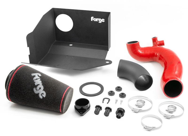 Filtr doplňuje silikonová sací hadice se zvětšeným objemem, hladkou vnitřní stěnou a příruba pro napojení na turbodmychadlo. Hadice je navržena tak, aby vedla vzduch k turbu co nejpřímější cestou bez restrikcí a nežádoucích zlomů. Celkový objem vedení vzduchu je u Forge větší o 50 % oproti sérii a v místě vstupu do turba narostl objem o 46 %. Výsledkem je lepší odezva na plyn a výraznější zvukový projev vozu.
