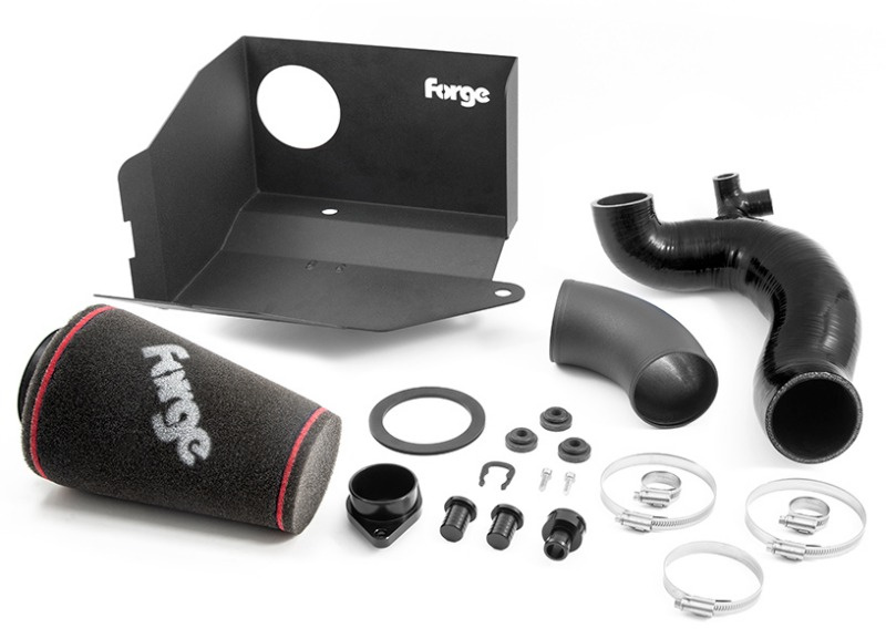 Filtr doplňuje silikonová sací hadice se zvětšeným objemem, hladkou vnitřní stěnou a příruba pro napojení na turbodmychadlo. Hadice je navržena tak, aby vedla vzduch k turbu co nejpřímější cestou bez restrikcí a nežádoucích zlomů. Celkový objem vedení vzduchu je u Forge větší o 50 % oproti sérii a v místě vstupu do turba narostl objem o 46 %. Výsledkem je lepší odezva na plyn a výraznější zvukový projev vozu.