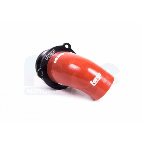 Sada obsahuje: přírubu z kovaného hliníku frézovanou pomocí technologie CNC, silikonovou hadici v červené barvě a potřebné hadicové spony. Uchycení příruby je pomocí tří montážních bodů, což zamezuje jakýmkoliv možným rezonancím.