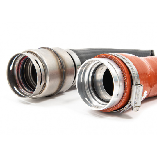 Navíc, komu by vadilo poslechnout si za jízdy zvukový projev turbodmychadla? Originální přepážková komora tak byla kompletně nahrazena CNC soustruženým adaptérem, který vede hladce vzduch z turbodmychadla do intercooleru. Gumová hadice je pak nahrazená silikonovým dílem, který odolává vysokým teplotám, tlaku a projevům stárnutí.