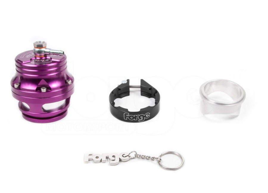 Forge Motorsport univerzální otevřený Blow Off Ventil (BOV) 50 mm, barva ventilu: Fialová, typ pružiny: Žlutá pružina + 6,5 mm podložka (-6 PSI)
