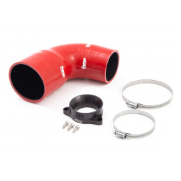 Vstup do turba se skládá z příruby k turbodmychadlu navržené pomocí Solidworks CAD programu a vyrobené z hliníku a ze silikonové redukční spojky ve vybrané barvě. Tento díl kompletně nahrazuje originální restriktivní hliníkové vedení k turbu a naplno zpřístupní potenciál sportovního 4" sání.