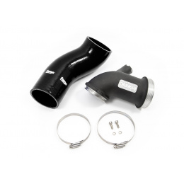 Originální plastové vedení vzduchu k turbodmychadlu má harmonikový tvar, který způsobuje nežádoucí víření vzduchu a brání jeho přímému a hladkému vedení k turbodmychadlu. V případě vstupu do turba Forge Motorsport je plastové vedení nahrazeno silikonovou hadicí se zcela hladkým vedením vzduchu. Kromě toho také zlepšuje vzhled vedení v motorovém prostoru.