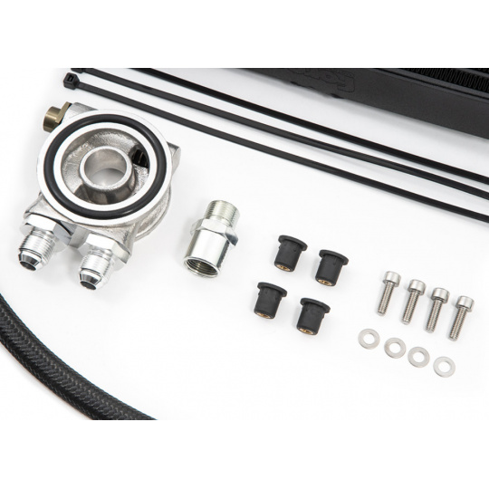 Sada FMOC14 navíc na rozdíl od některých jiných řešení zachovává tovární výměník olej–voda, čímž v podstatě zdvojnásobuje kapacitu chlazení oleje. Součástí je přesně tvarovaný držák pro Kona N, opletené hadice ve správné délce a sendvičový adaptér s termostatem – vše připravené pro bezproblémovou instalaci.