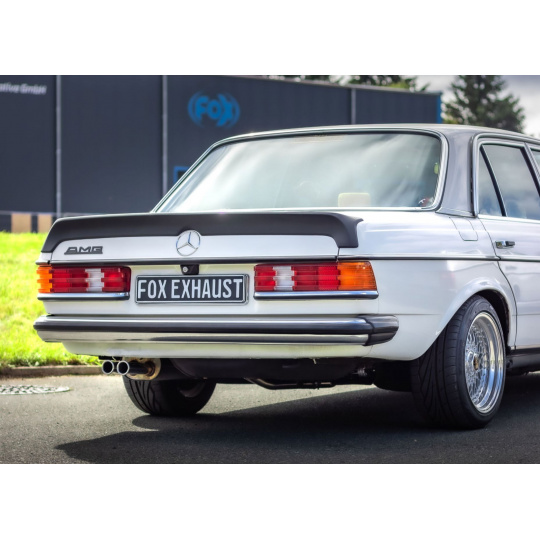 Fox Sportauspuff kompletní výfukový systém od motoru s koncovkou 2×50 typ 12R vytočená směrem ven pro Mercedes 123 s motorem 2.3 l, pro 4válcové motory