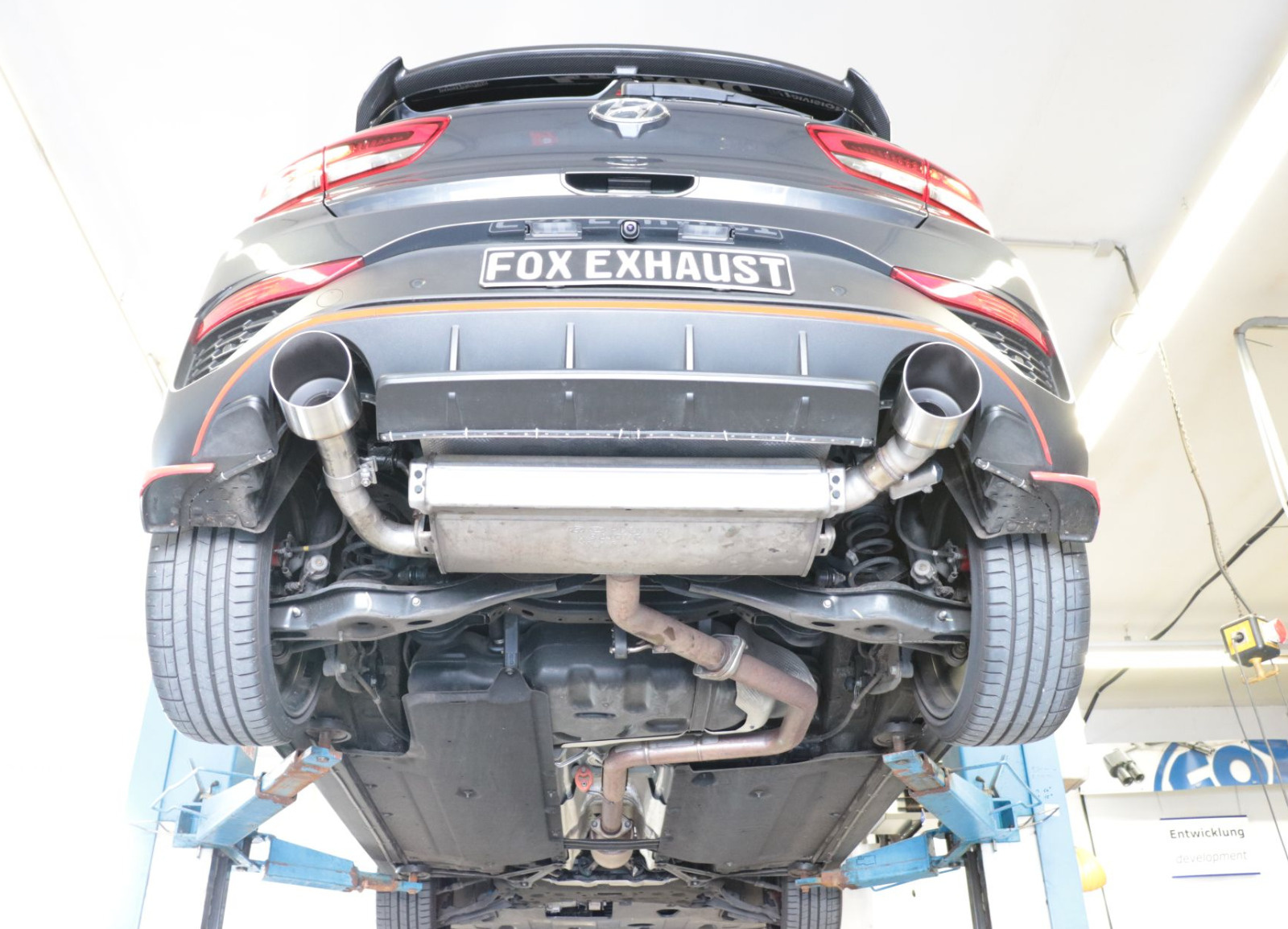Všechny výfukové systémy Fox jsou 100% vyráběny v Německu. Koncovky koncových tlumičů jsou ručně leštěny do vysokého lesku (s výjimkou černě lakovaných koncovek nebo koncovek, které ústí do továrních koncovek vozu umístěných v zadním nárazníku).