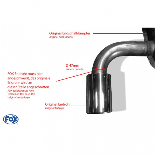 Všechny výfukové systémy Fox jsou 100% vyráběny v Německu. Koncovky koncových tlumičů jsou ručně leštěny do vysokého lesku (s výjimkou černě lakovaných koncovek nebo systémů zakončených do továrních koncovek vozu umístěných v zadním nárazníku).