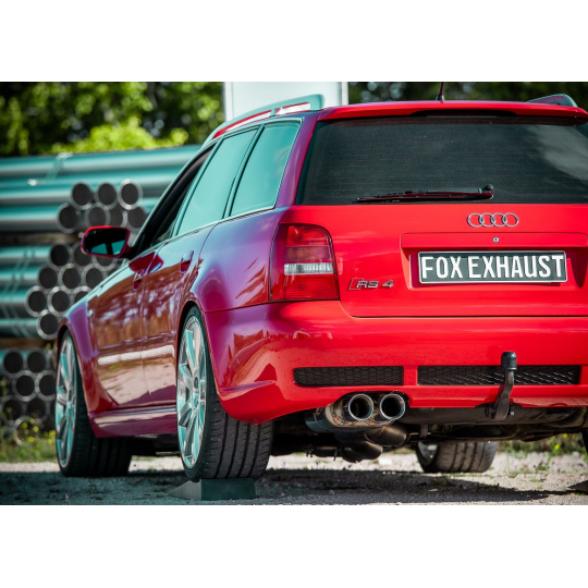 Fox Sportauspuff koncový a středový tlumič včetně Y-adaptéru pro připojení na originální downpipe s koncovkou 2x90 Typ 24 dvojitá pro Audi S4 B5 s motorem 2.7