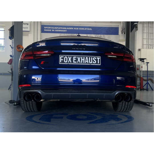 Fox Sportauspuff koncový díl s výf. klapkou s koncovkou 2x100 Typ 25 na obou stranách pro Audi S4 B9 2016- s motorem 3.0 s černě smaltovanými koncovkami